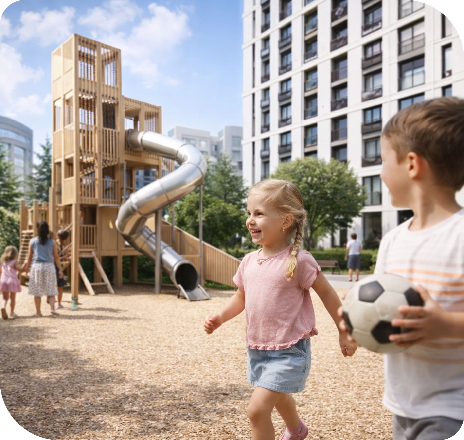 Жилой комплекс расположен в удобном, развивающемся районе города. Здесь сосредоточено всё необходимое для комфортной повседневной жизни: школы и детские сады, магазины и торговые центры, медицинские учреждения и развлекательные организации